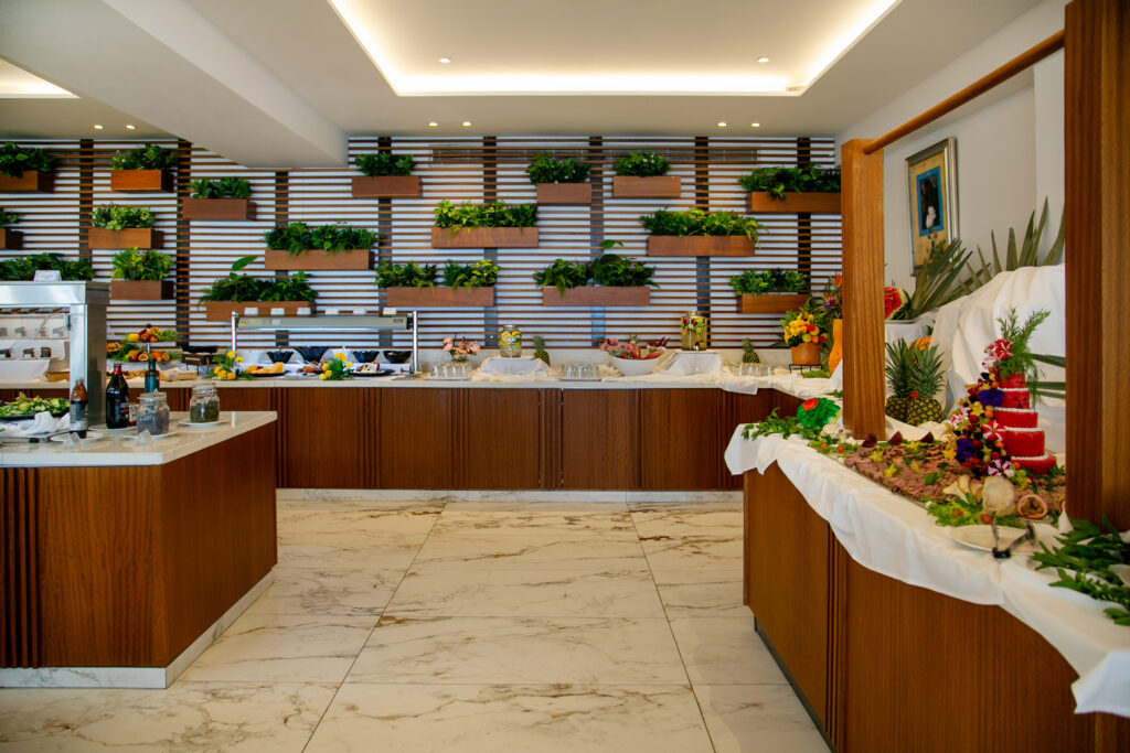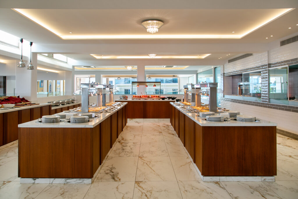 In our main restaurant, you will have the chance to sample our rich buffet with cuisines from all over the world. In a stylish setting, decorated in beige and white, you can either choose to sit inside or outside on the veranda, by the pool. Ammochostos’ menu consists of authentic flavors from Cyprus, Greece, Italy, France, Asia, Mexico and many other international cuisines that you can also enjoy in the theme nights taking place during the week. An à la carte menu or a buffet is available. Breakfast is also served here.