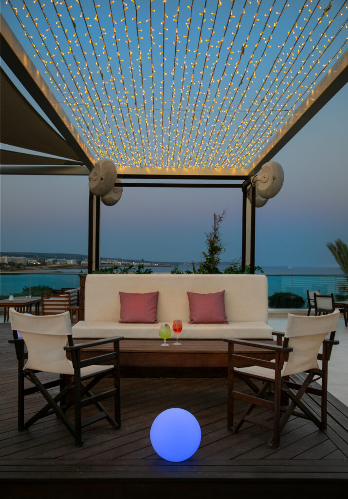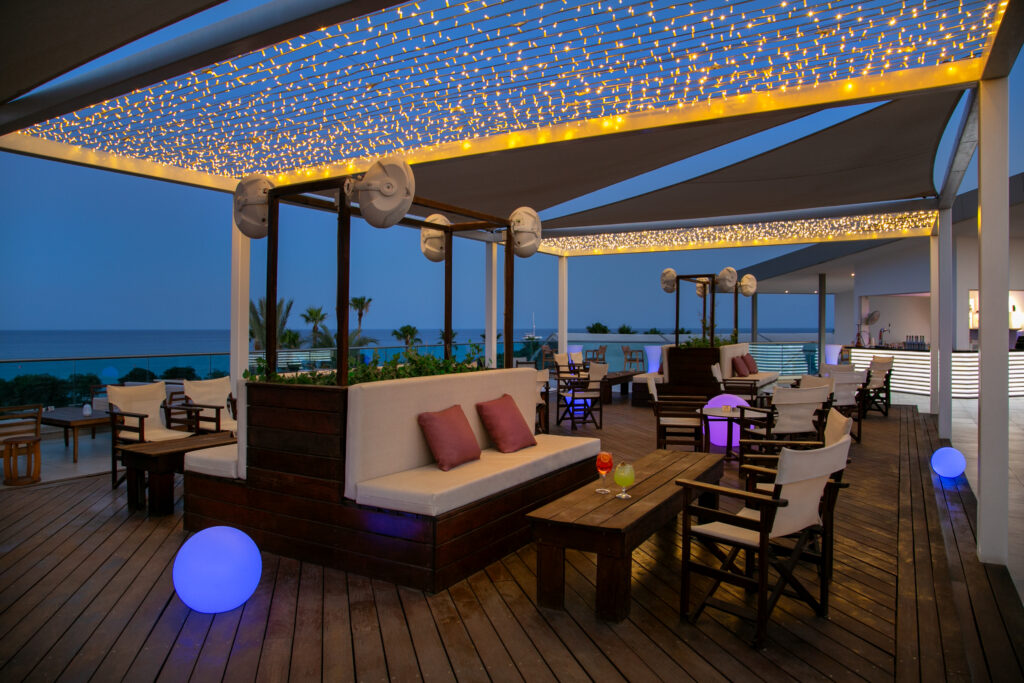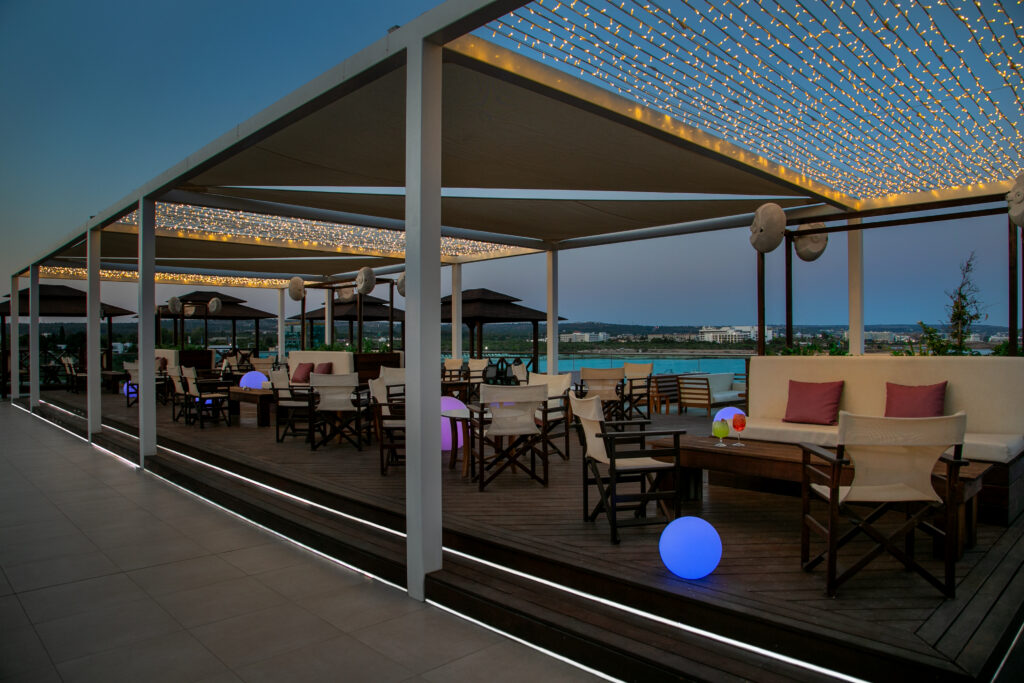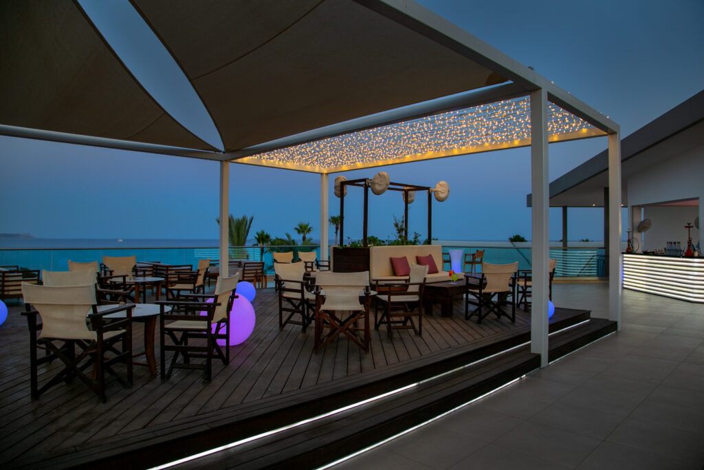 The newest addition to our hotel, is the Panorama Rooftop Bar. With a fantastic view of the idyllic scenery of Agia Napa, from Makronissos to Cape Greco, you will experience the most beautiful sunsets and nights of your holidays, with a glass of wine or an exotic cocktail while enjoying the flavours of our lovely shishas.